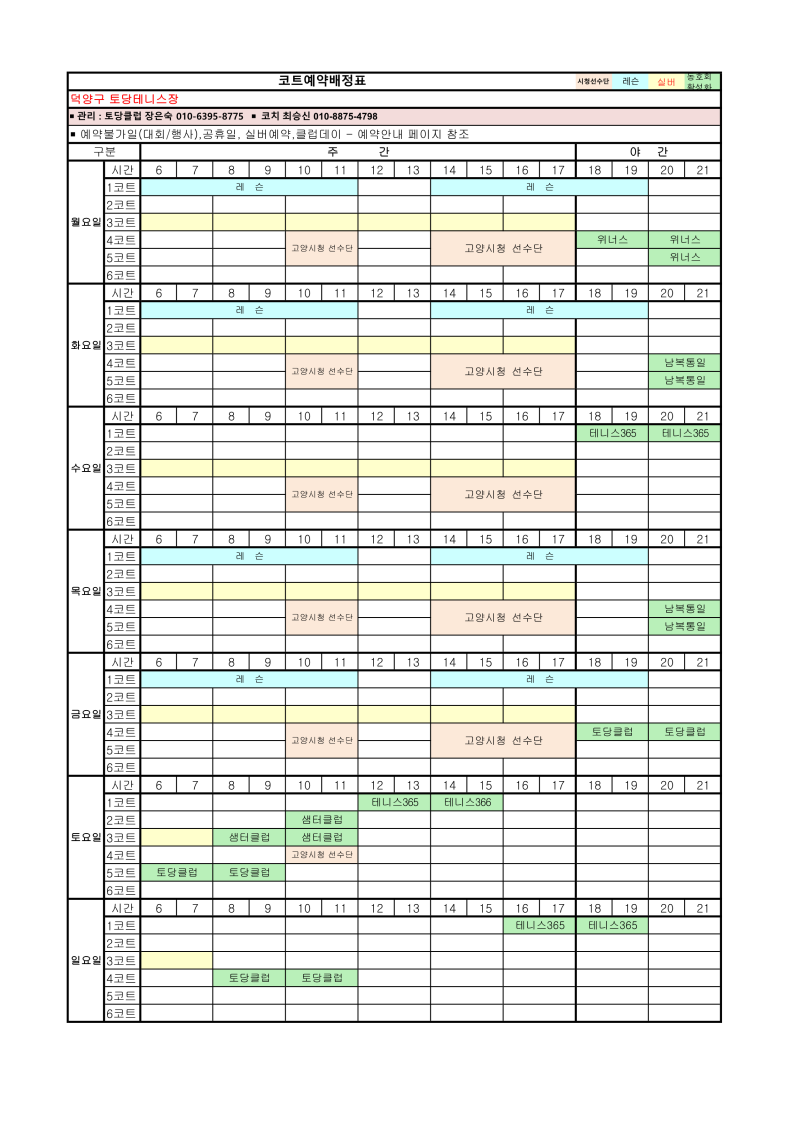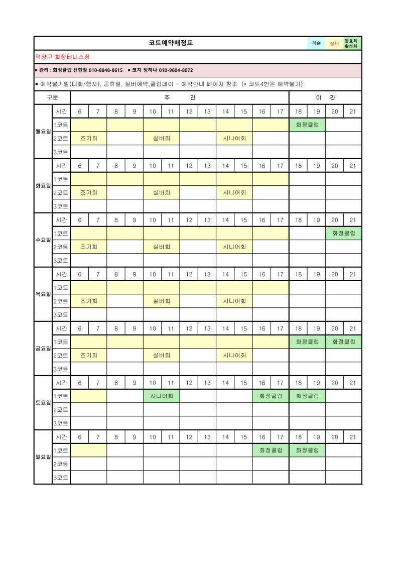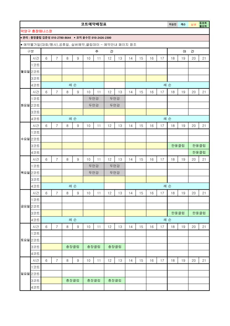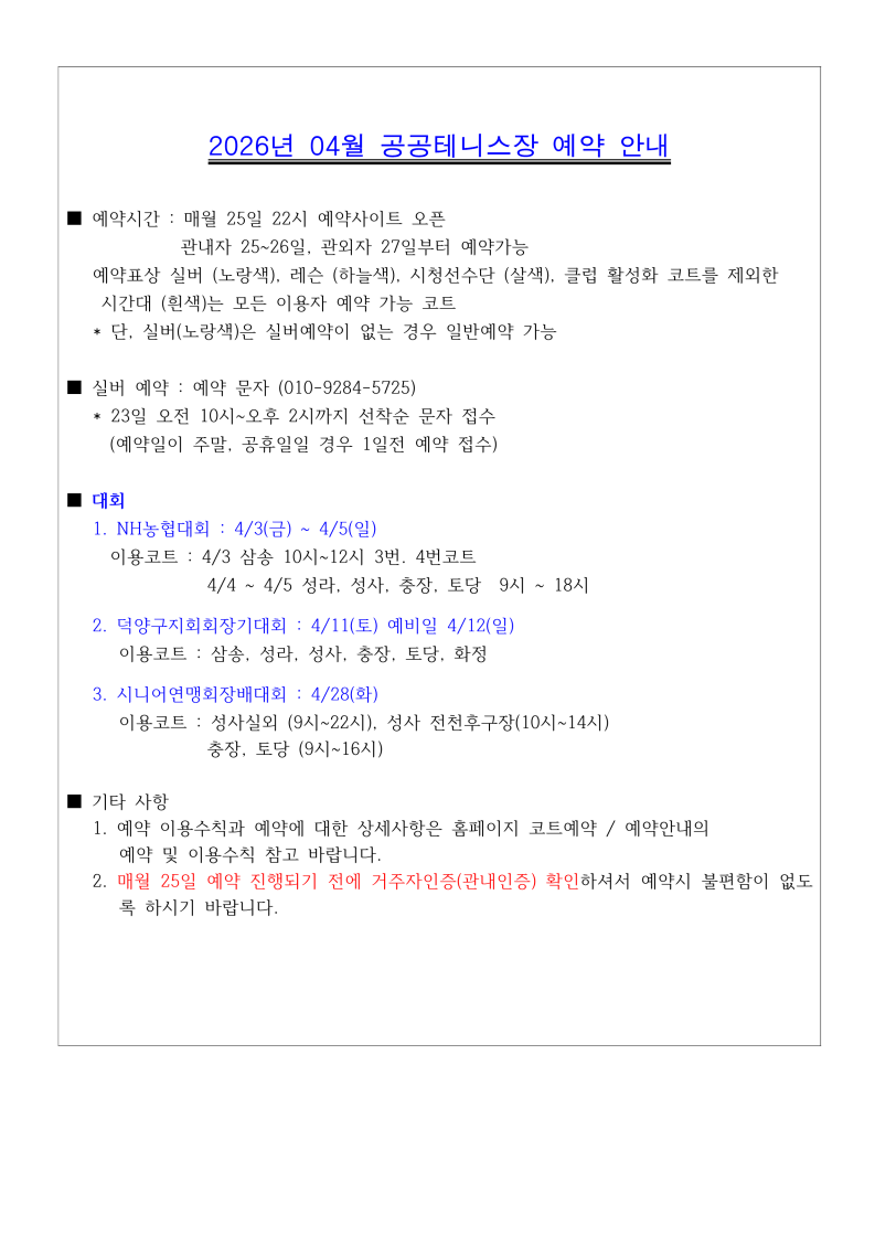 2026년 4월 코트예약 안내 및 코트 배정표