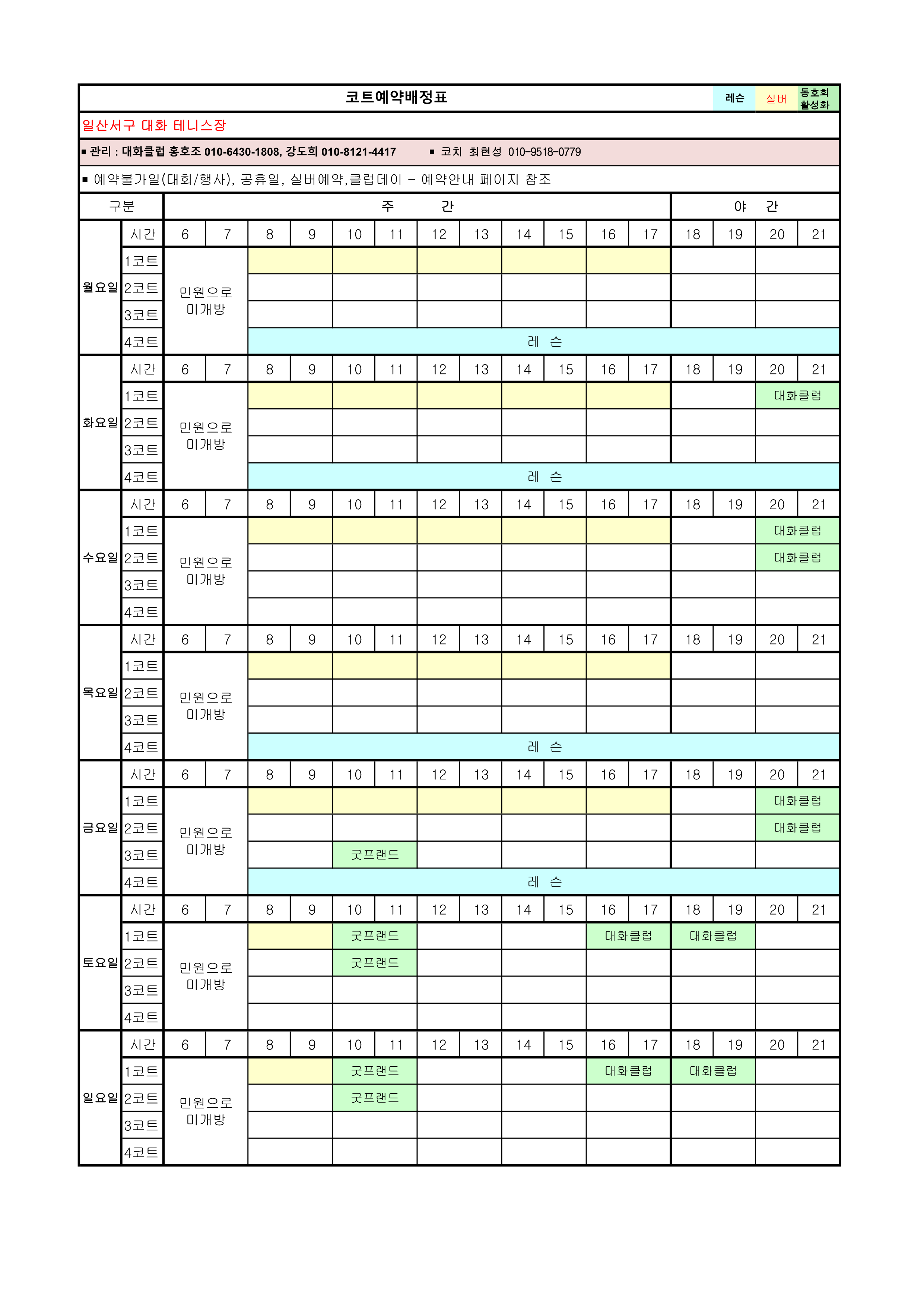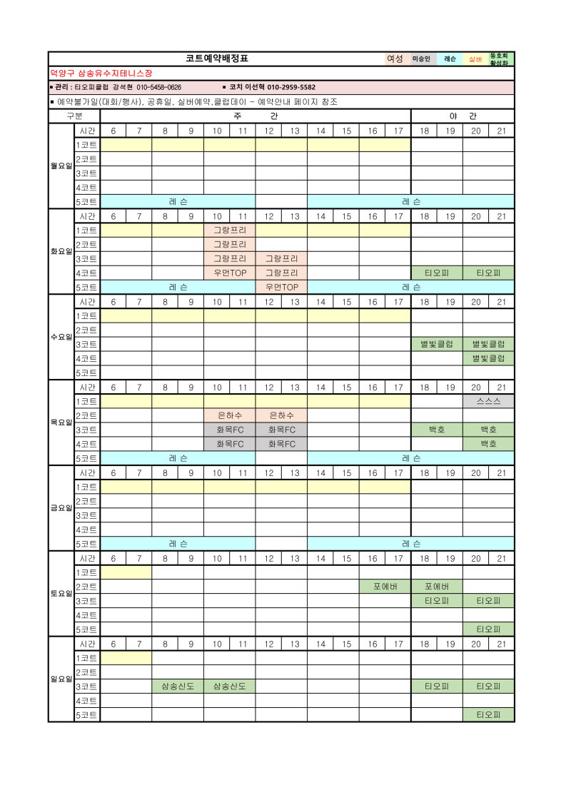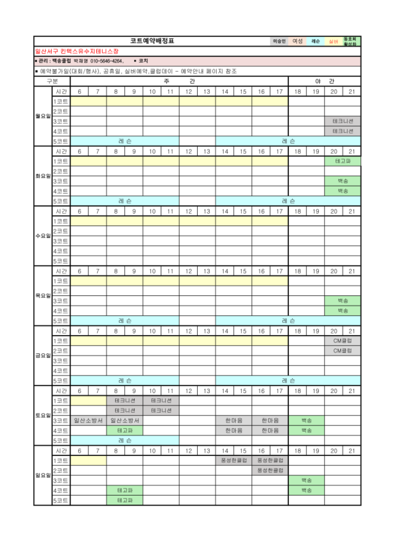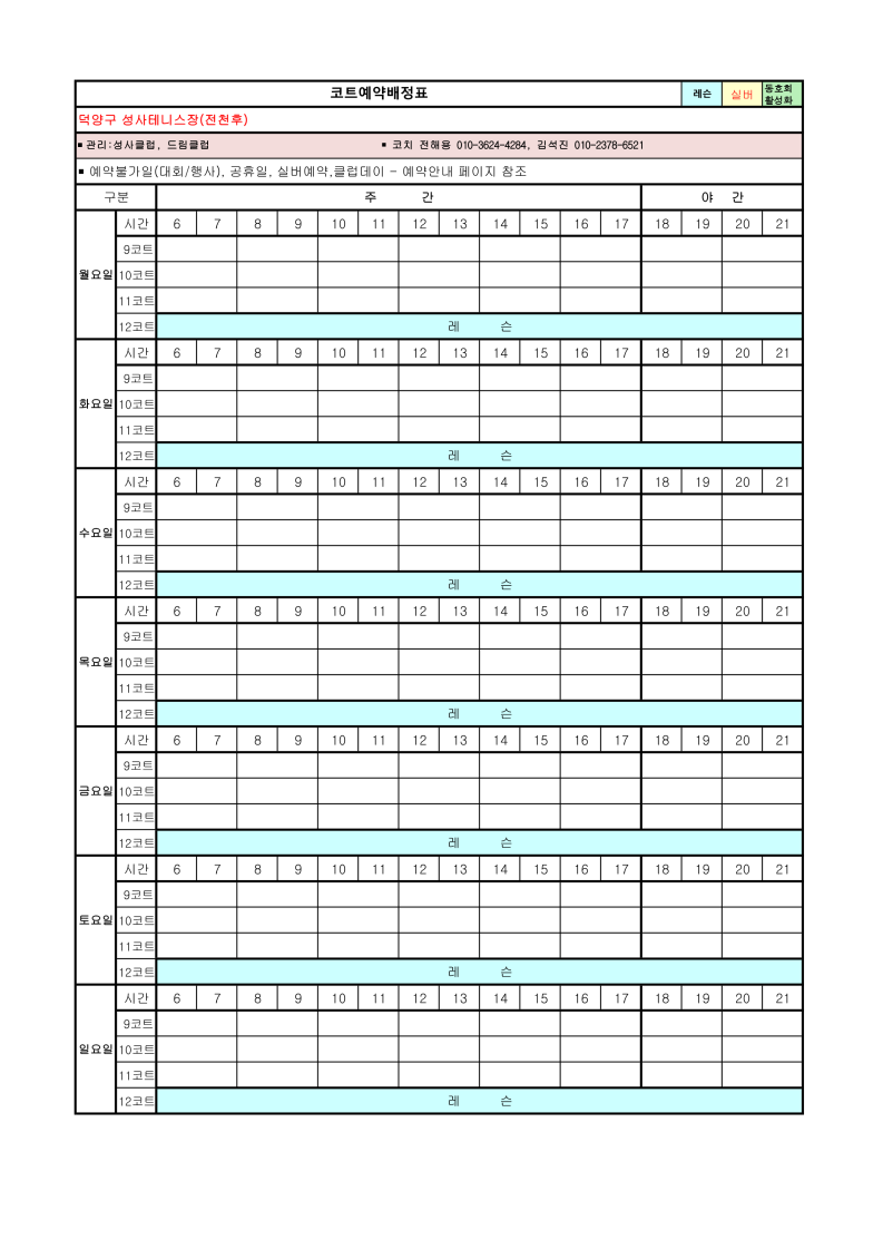 2026년 4월 코트예약 안내 및 코트 배정표