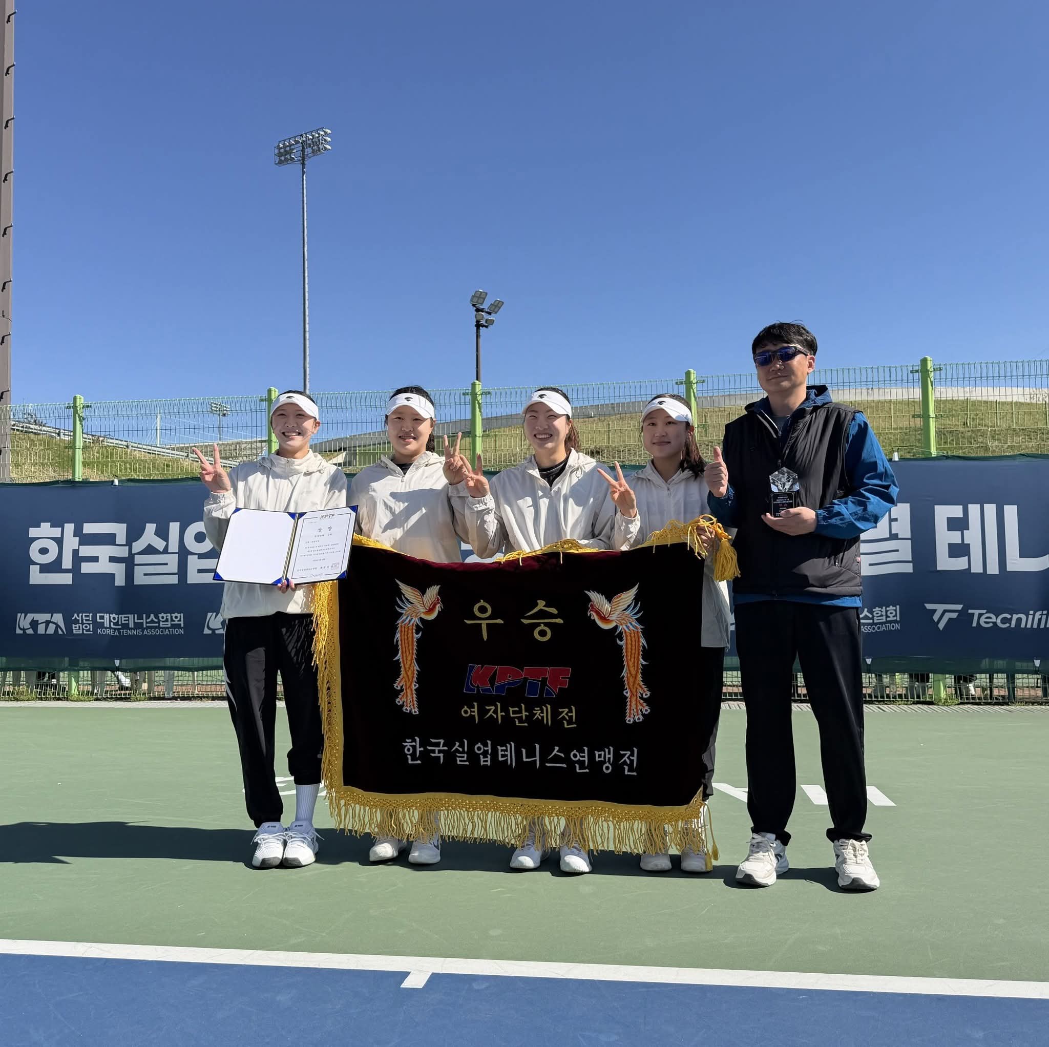고양특례시 직장선수단(감독 이수호, 여성부)이 4월 5일 경남 함양에서 열린 ‘제1차 한국실업테니스연맹전 및 2026년도 전국종별테니스대회’에서 ‘단체전 우승’을 차지했습니다. 이번 성적은 고양시 직장선수단 창단 이래 첫 단체전 우승입니다.