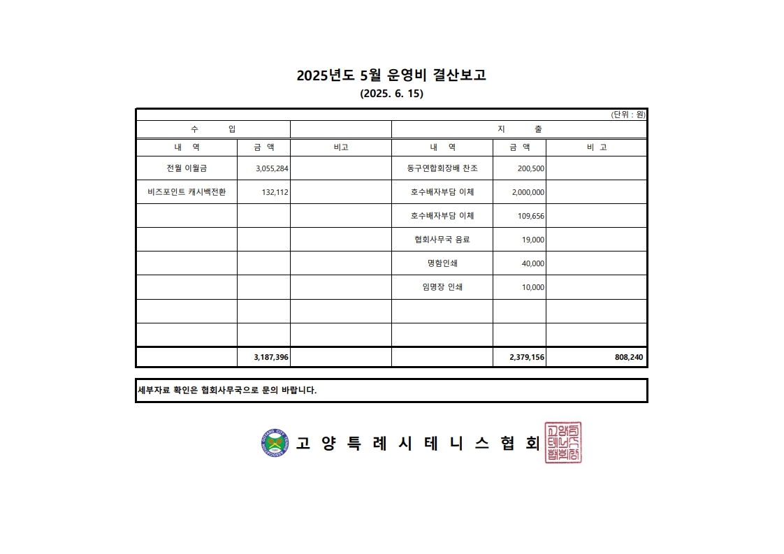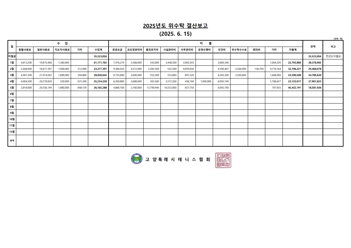 [공지] 2025년 (1~5월) 위수탁관리와 운영비 사용내역 공지