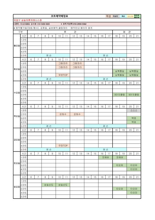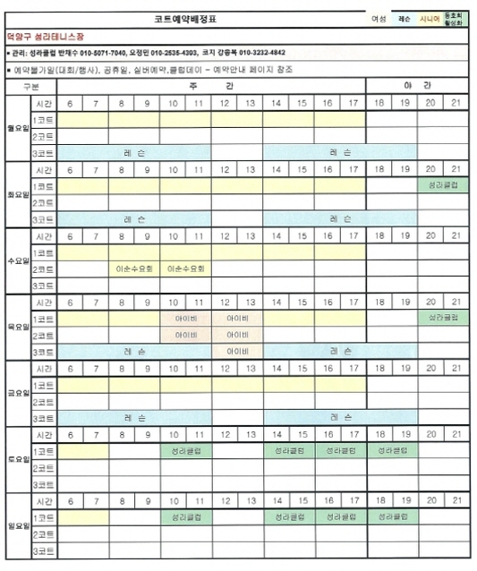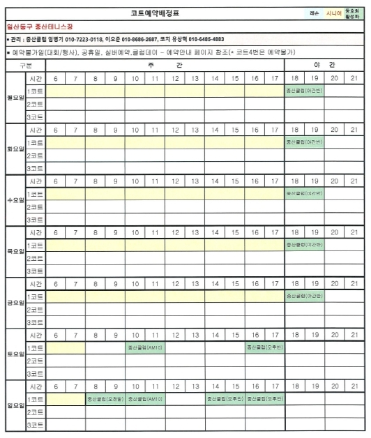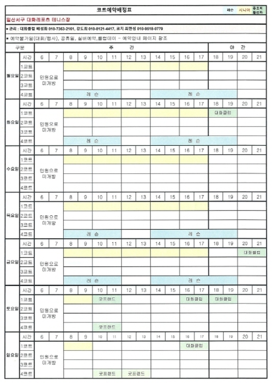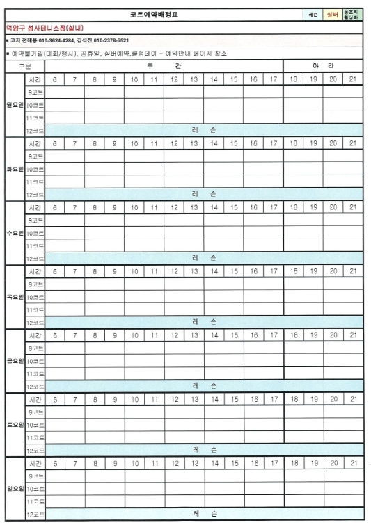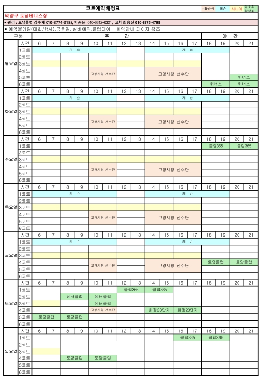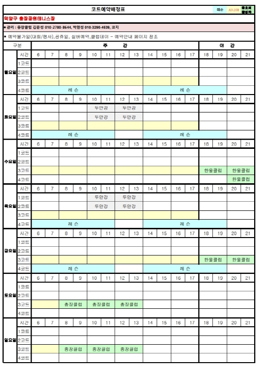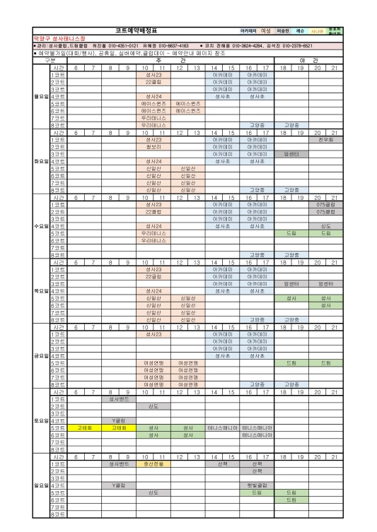 8월 코트배정표