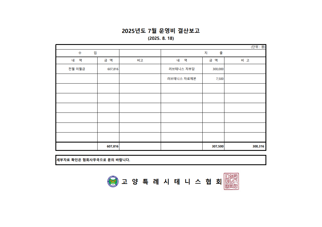 [공지] 2025년 (1~7월)위수탁관리와 운영비 사용내역 공지