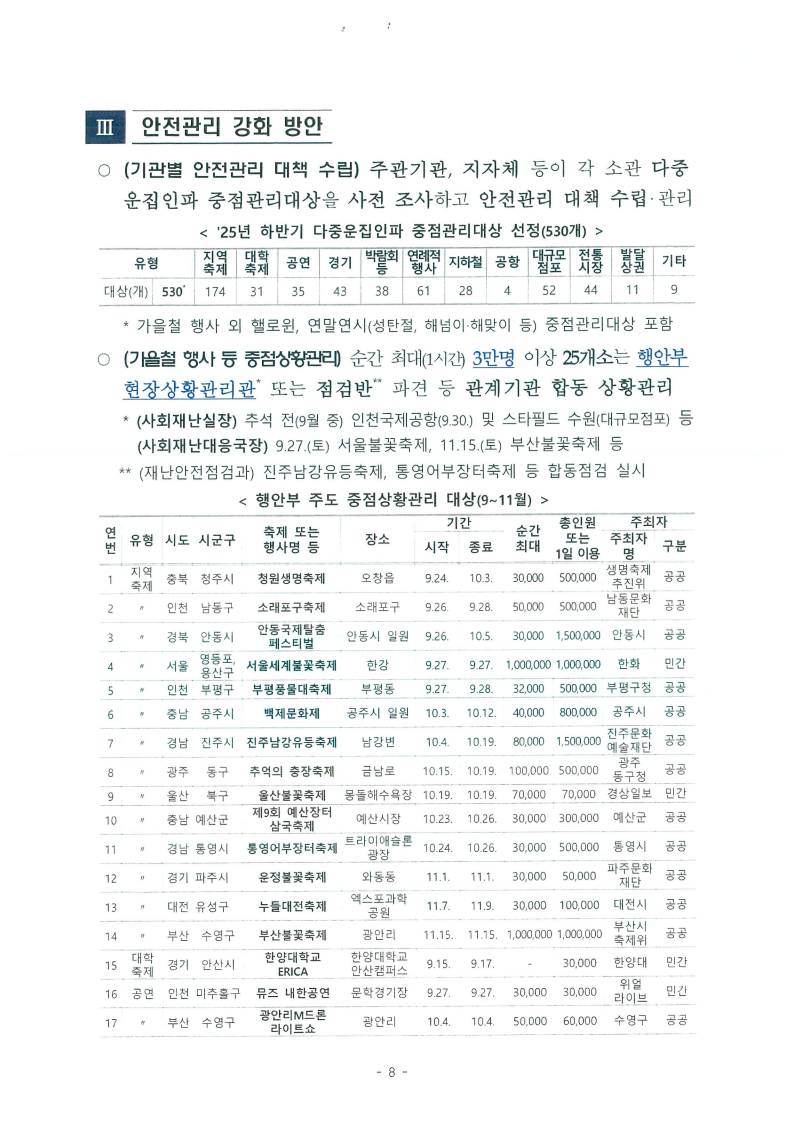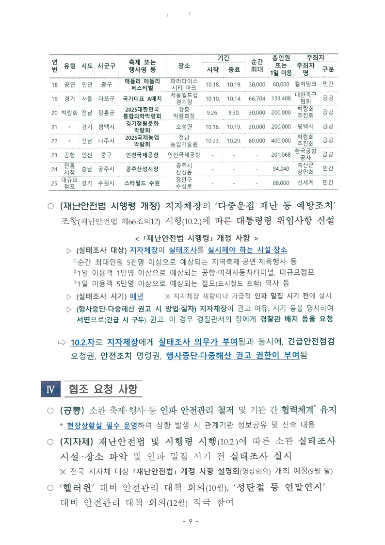 가을철 행사 등 다중운집인파사고 대비 안전관리 철저 요청관련 내용 파일 첨부하였습니다. 참고바랍니다.