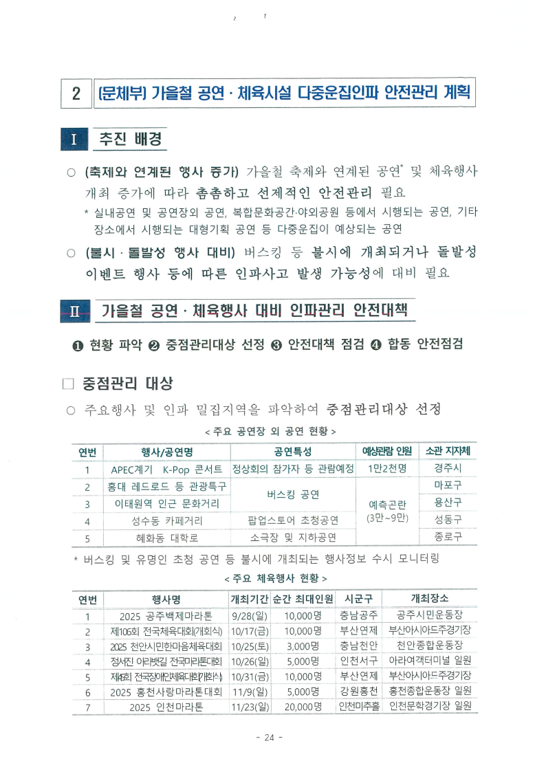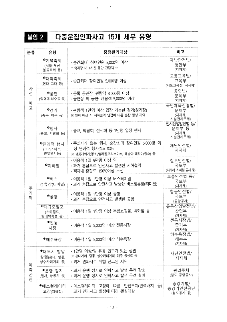 [공지] 가을철 행사 등 다중운집인파사고 대비 안전관리 철저요청