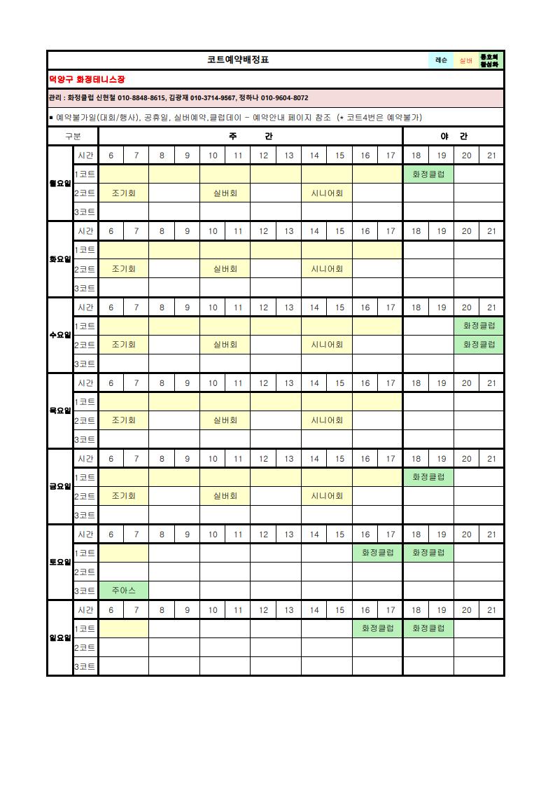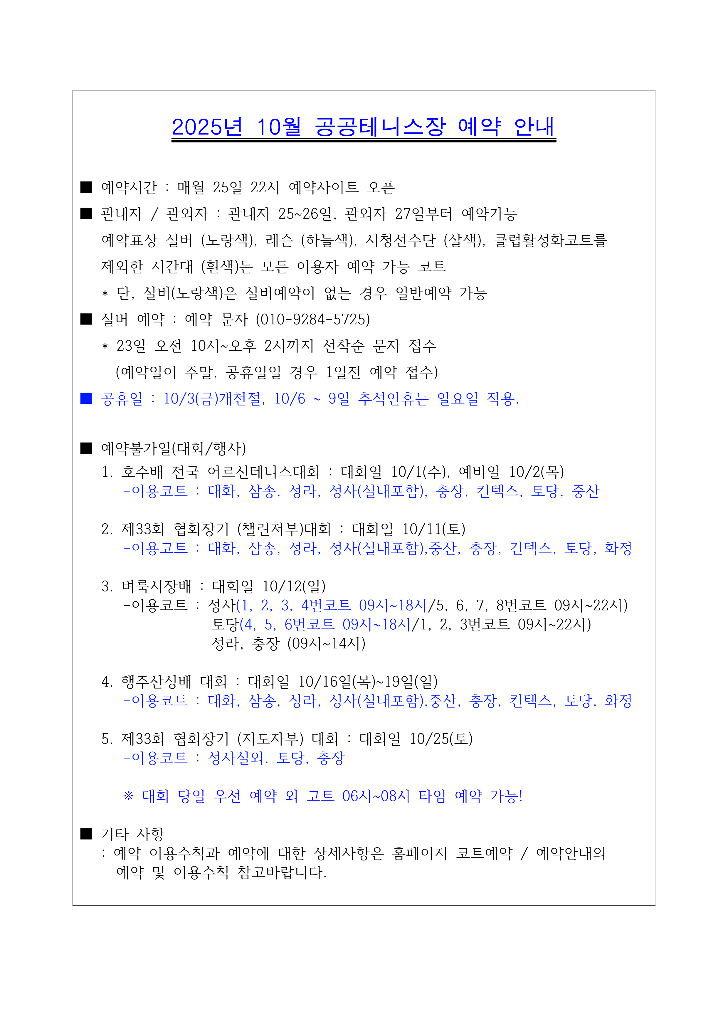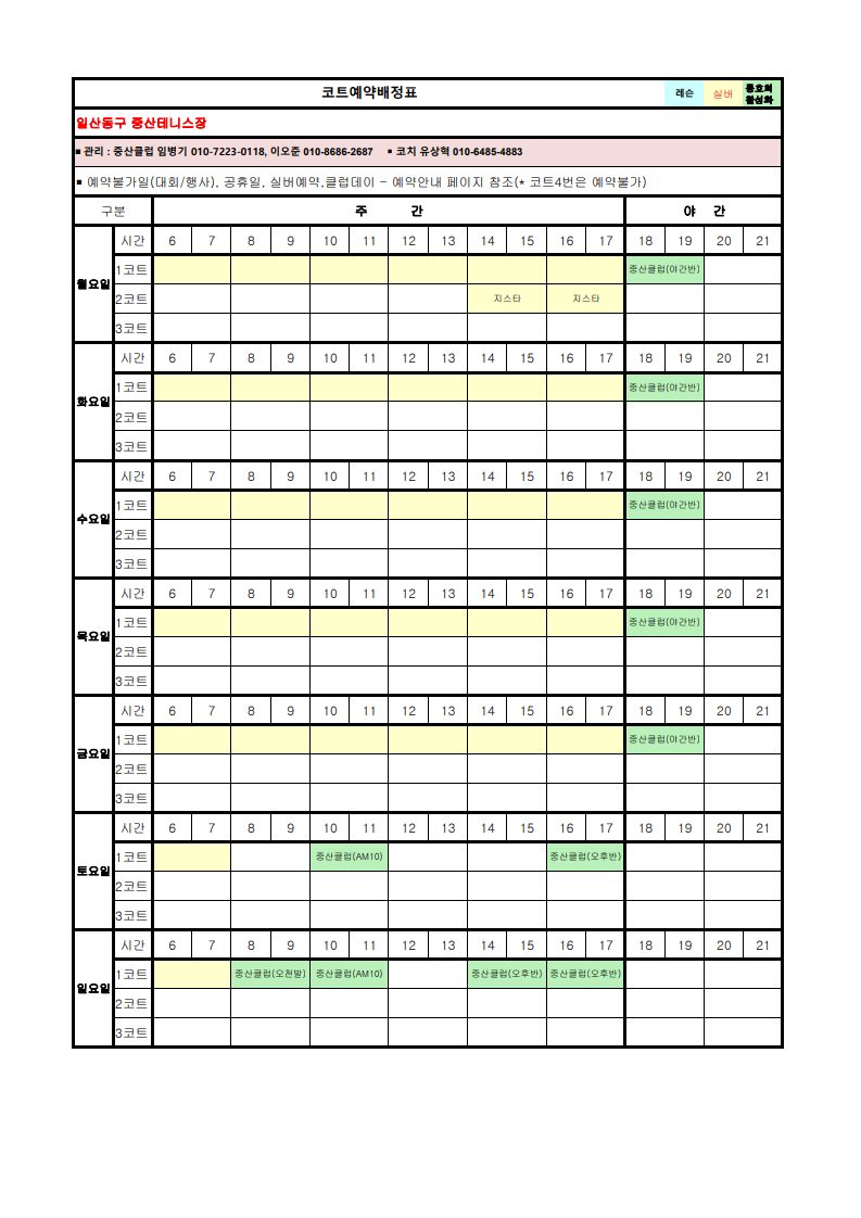 [공지] 10월 코트 예약안내 및 코트 배정표