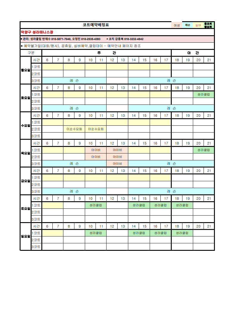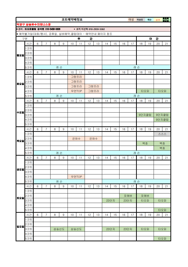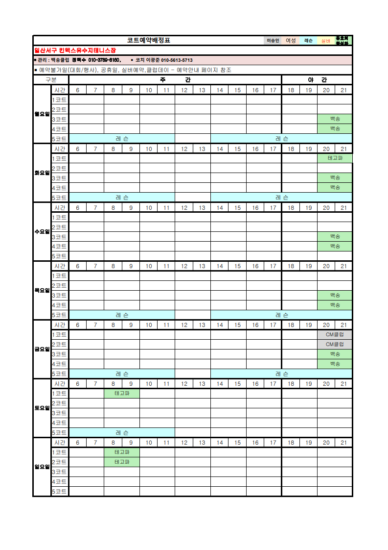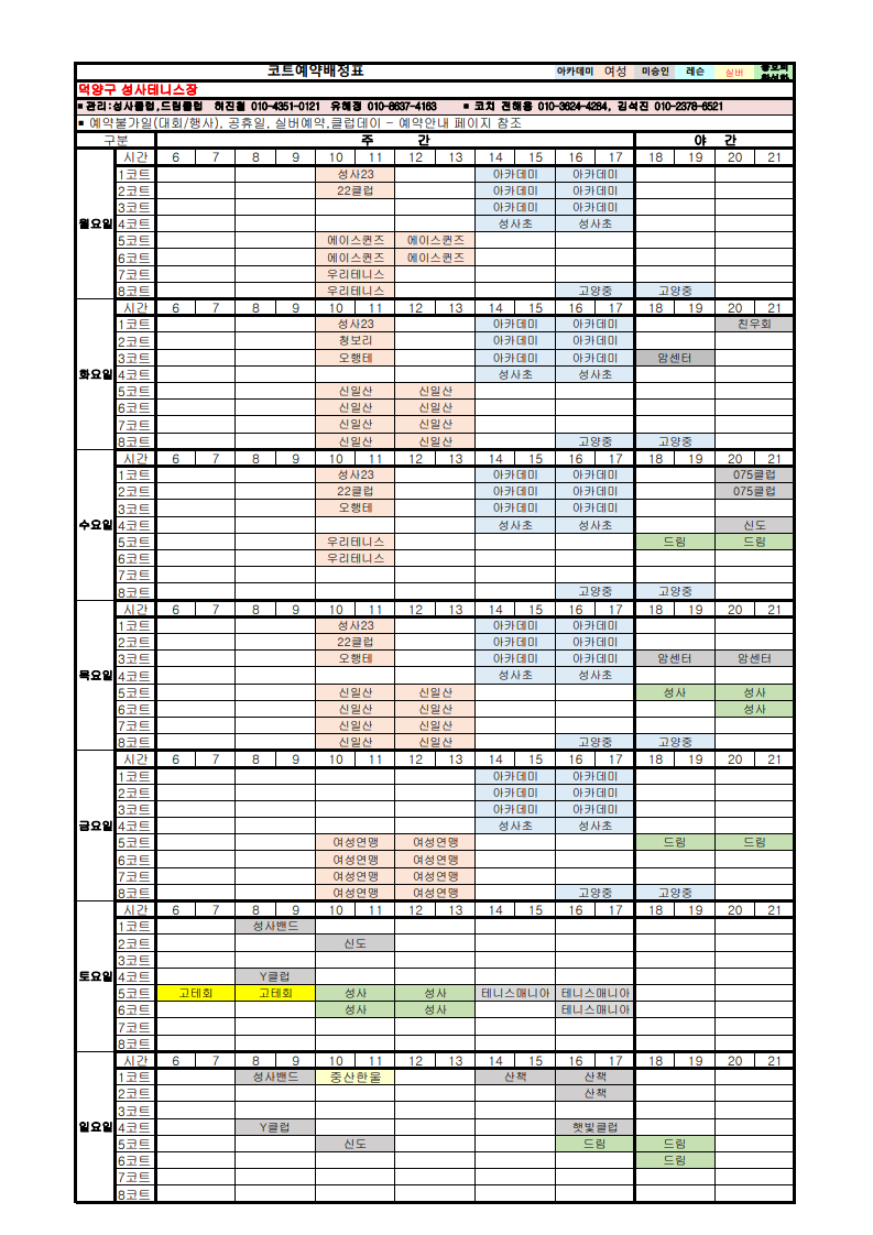 [공지] 10월 코트 예약안내 및 코트 배정표