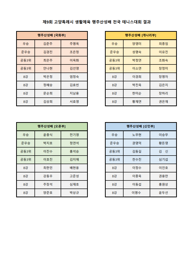 [대회 결과]행주산성배 전국테니스대회 결과 공지