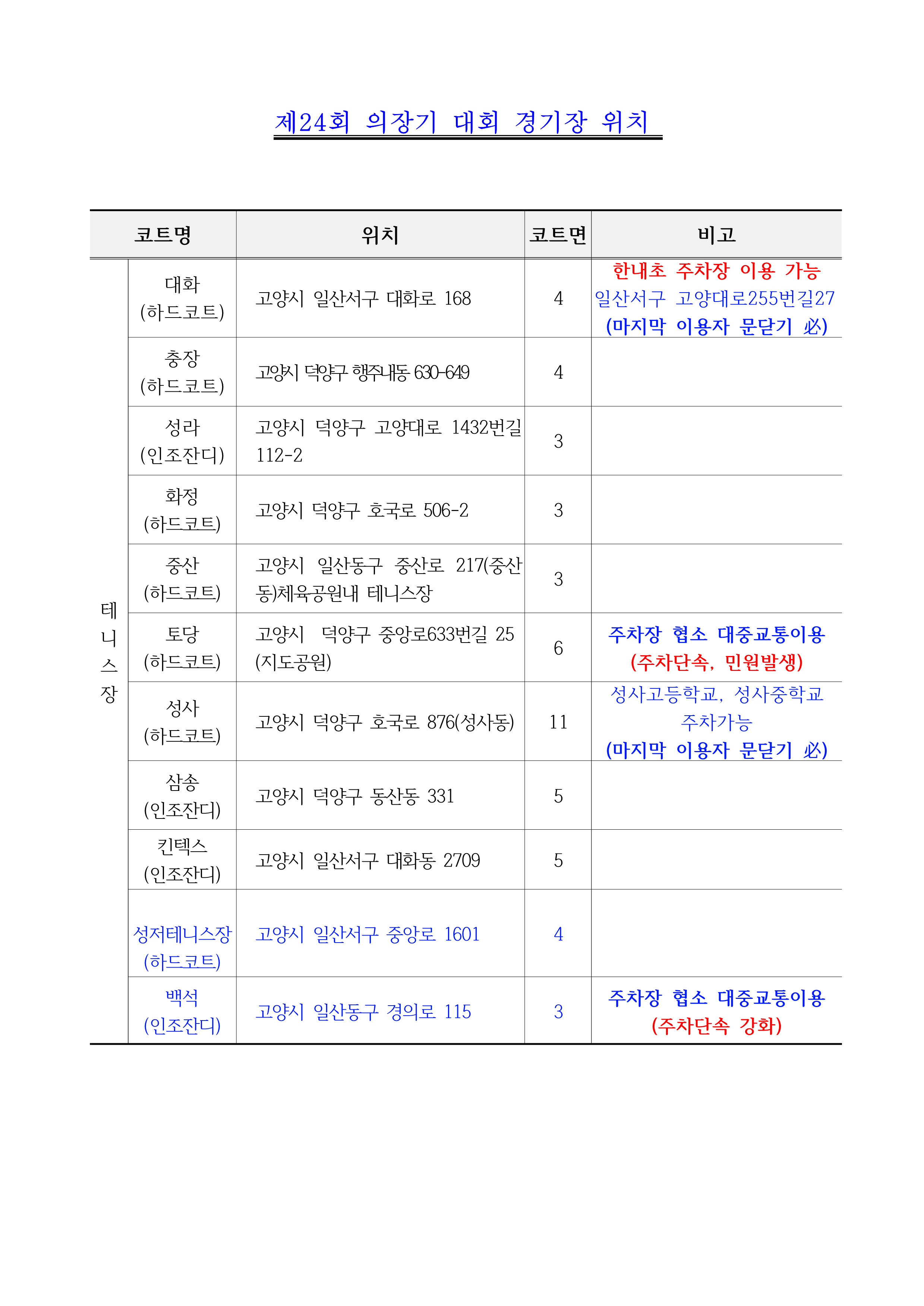 고양특례시 생활체육 의장기 테니스대회 경기장 위치 및 주차장 안내드리니 참고바랍니다.