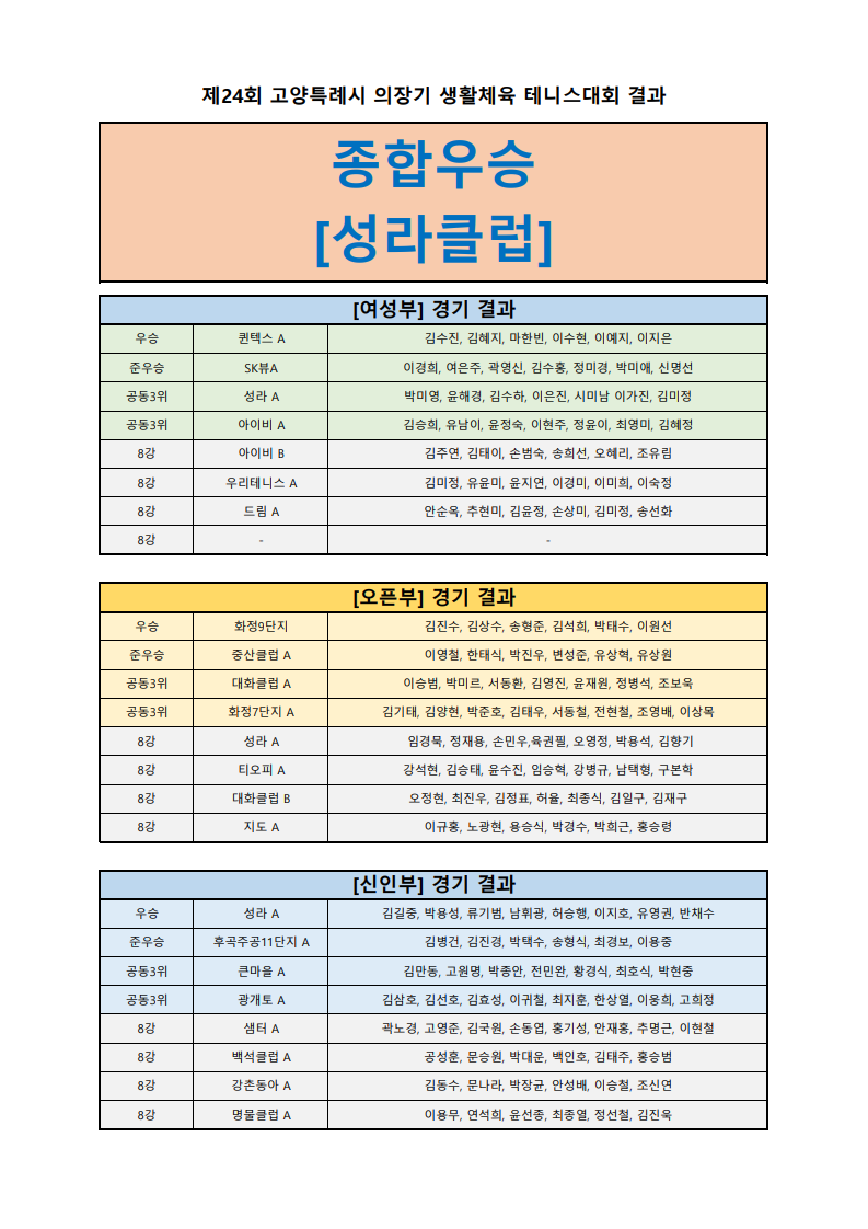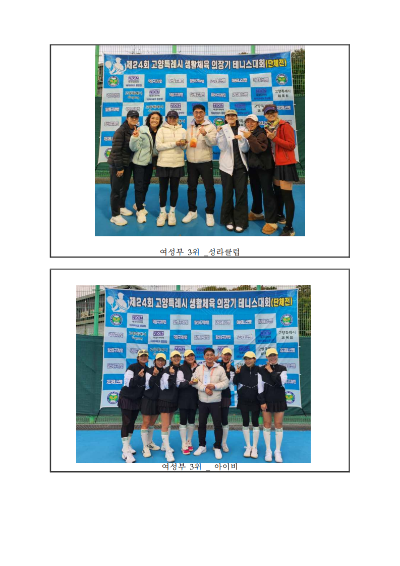 [대회결과] 시의장기 테니스대회(단체전) 경기결과 안내