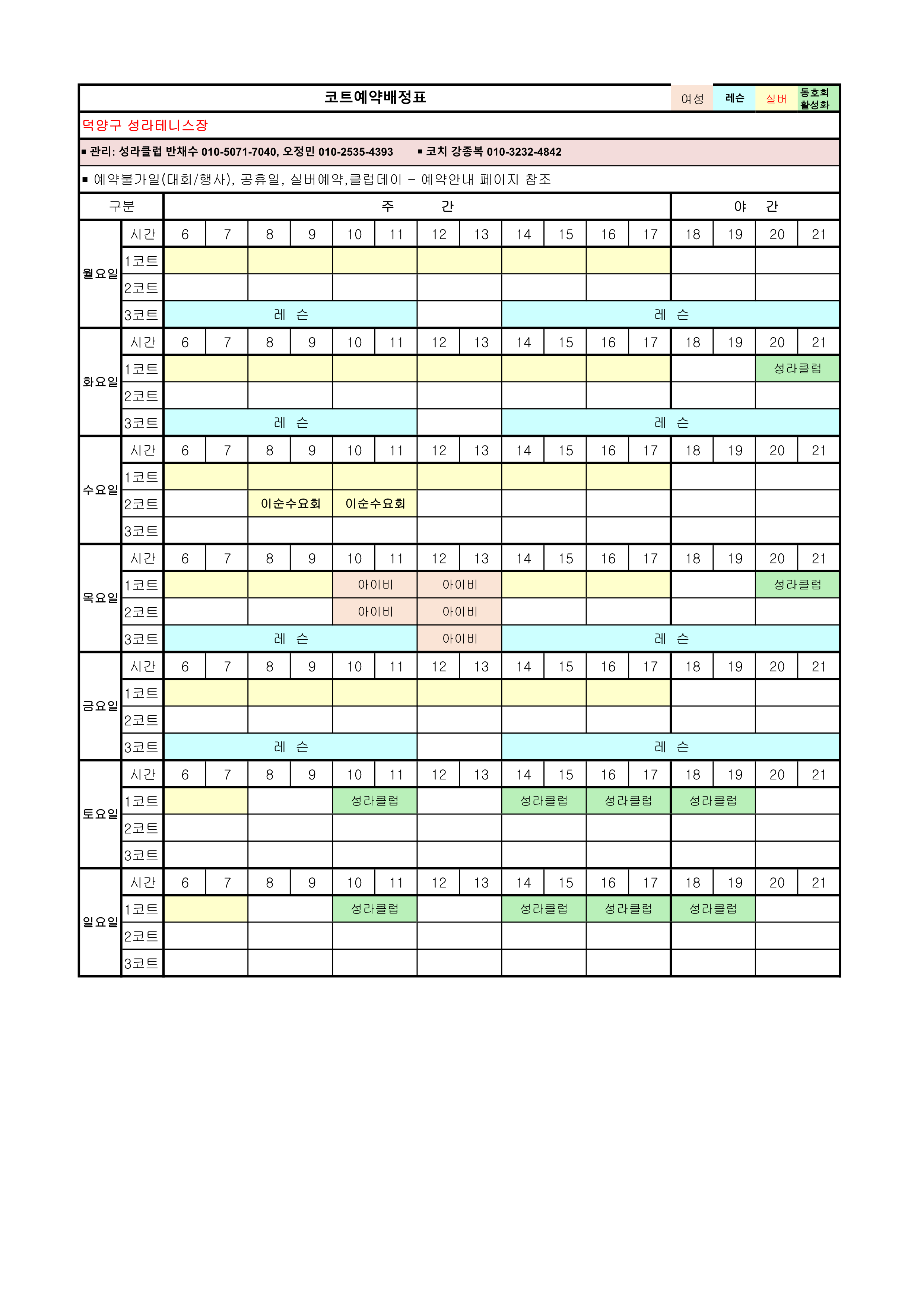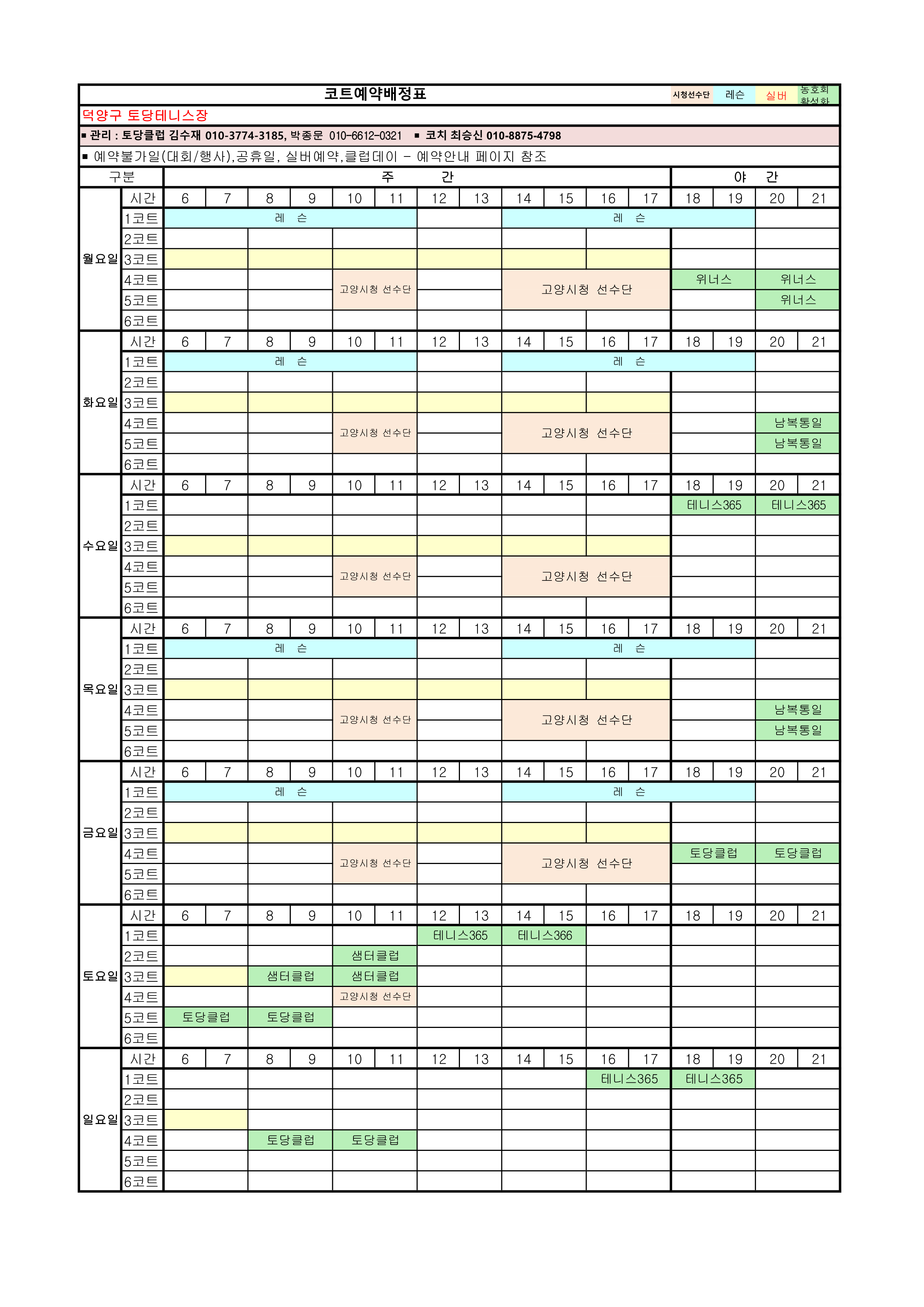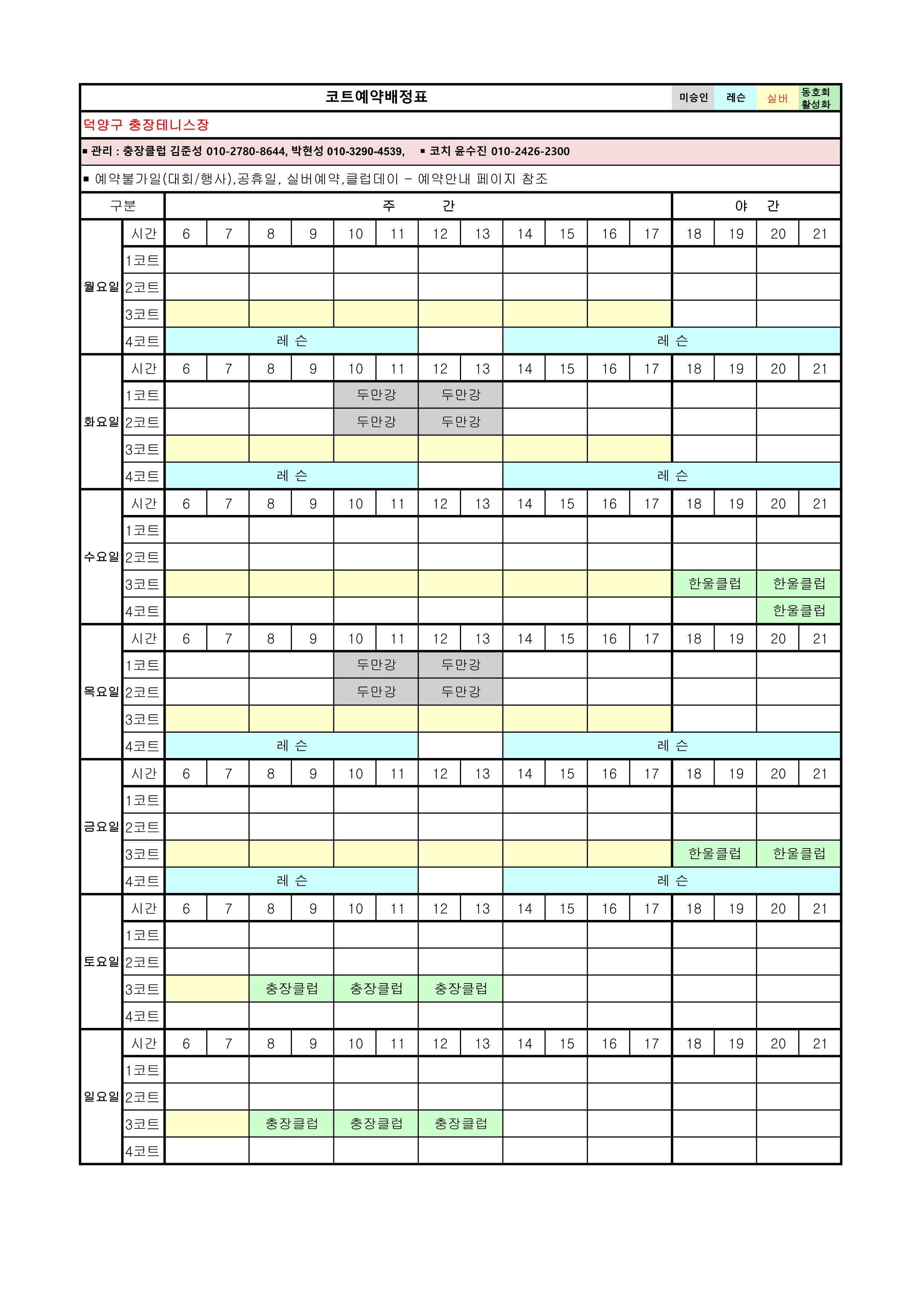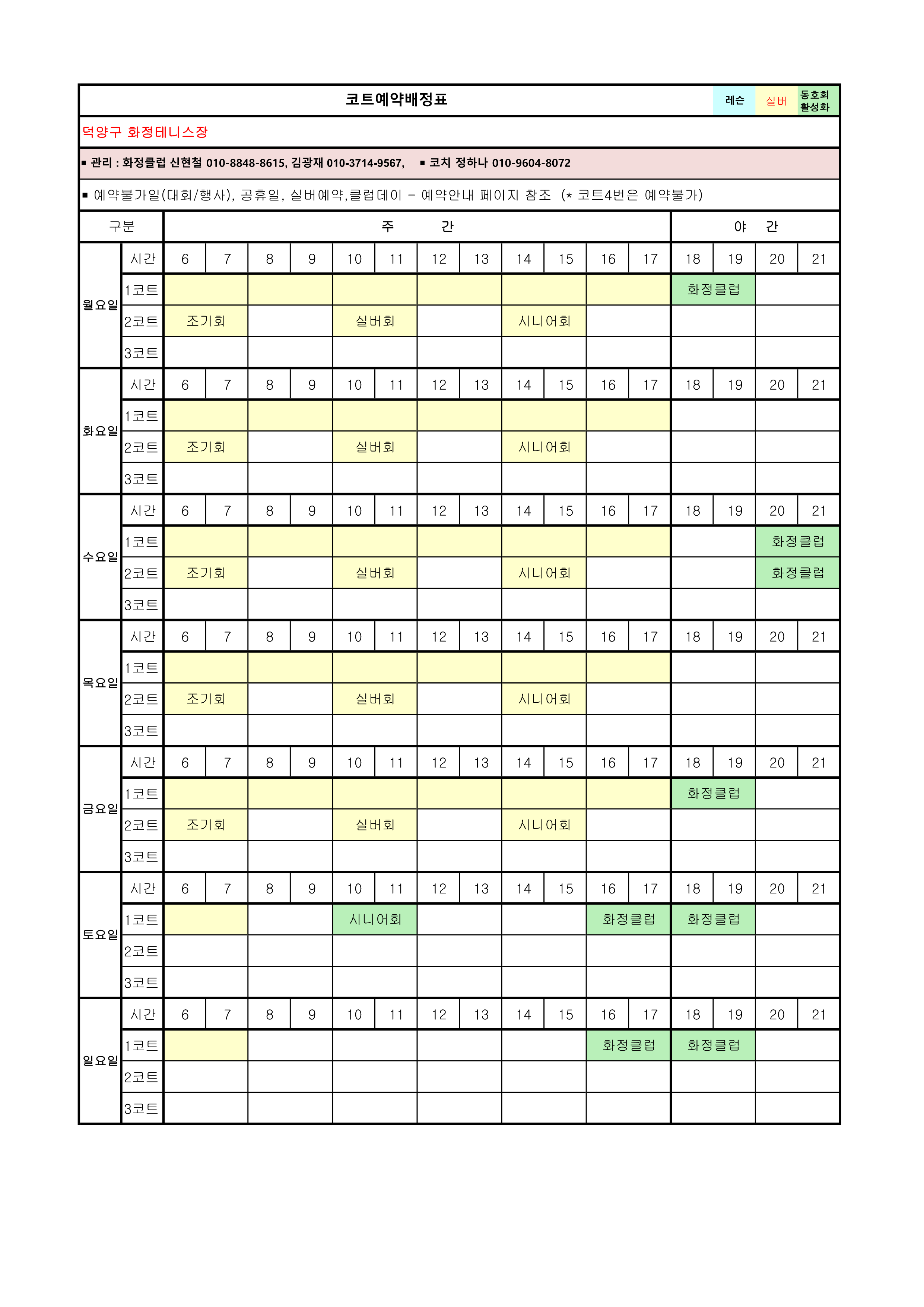 [안내]12월 코트예약 안내 및 코트 배정표