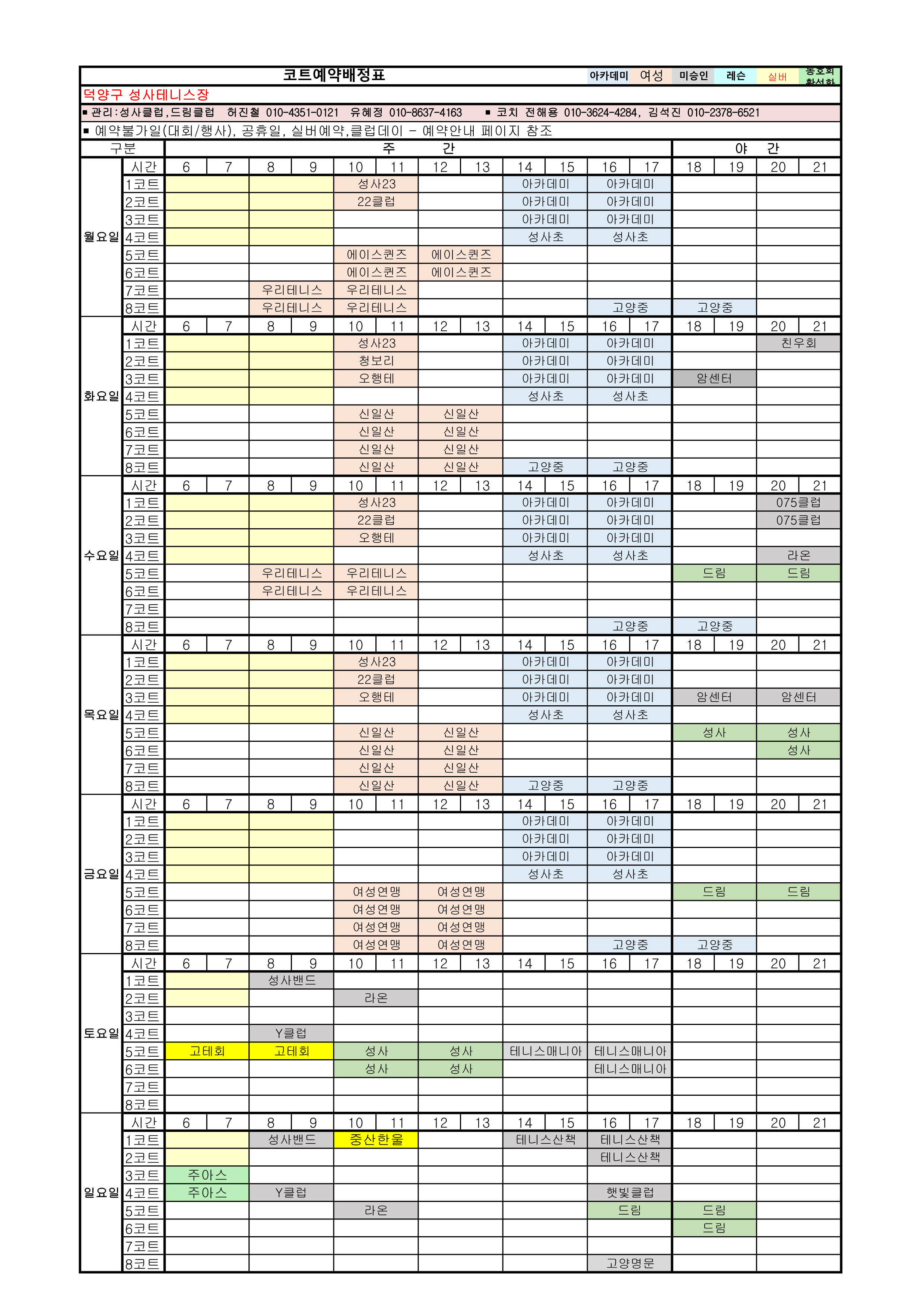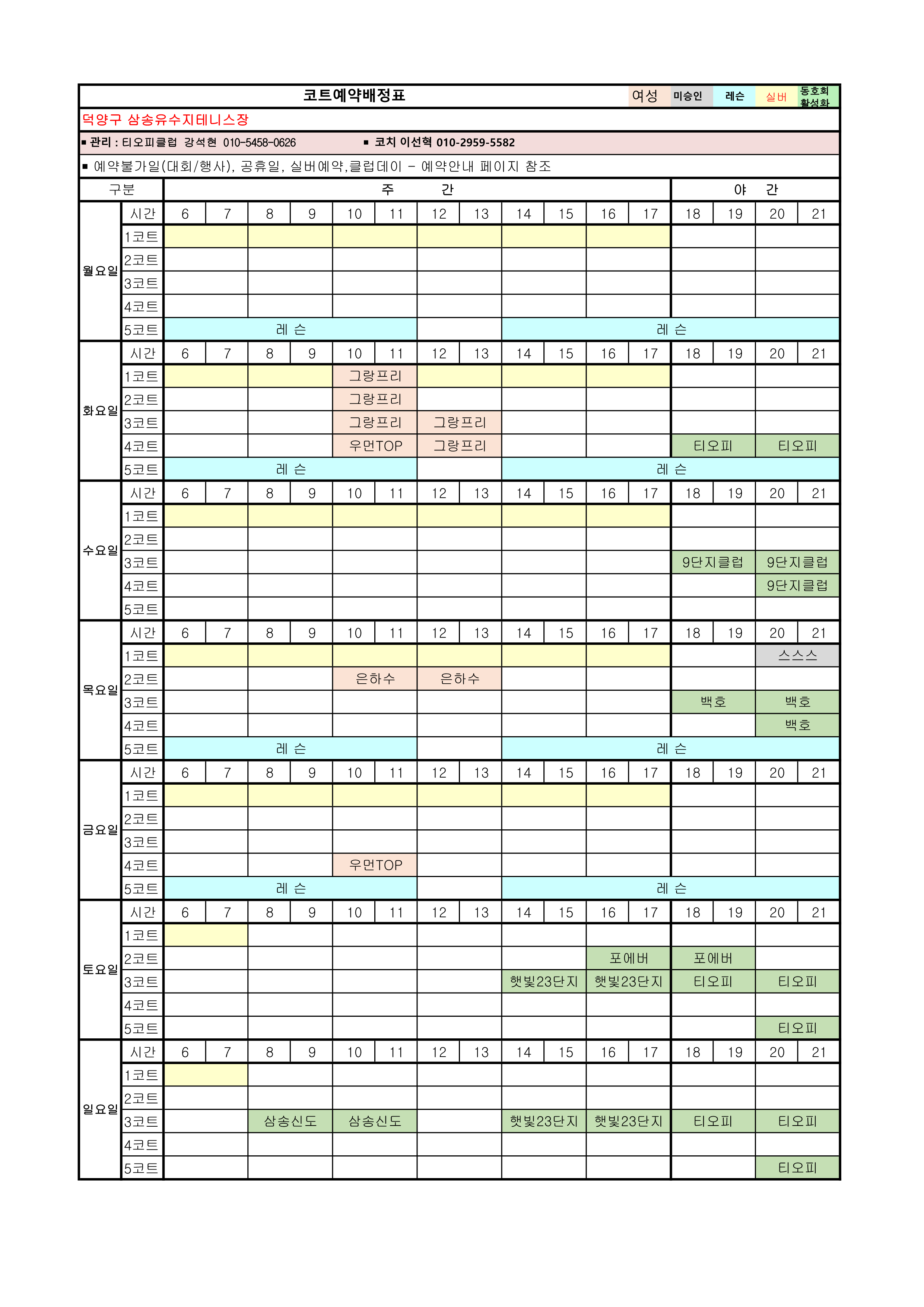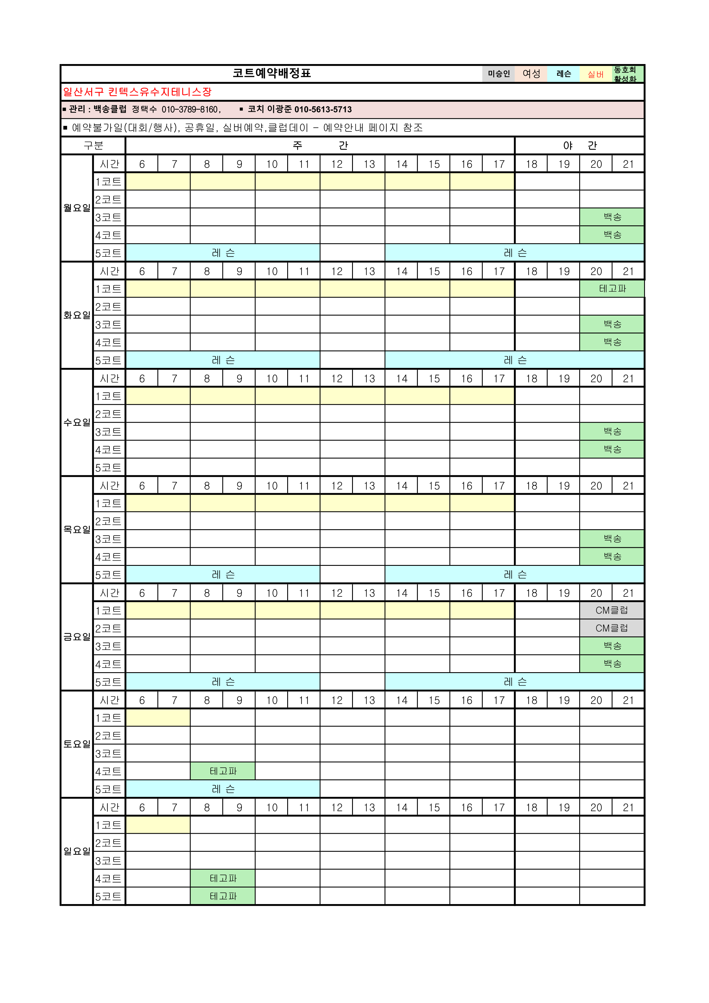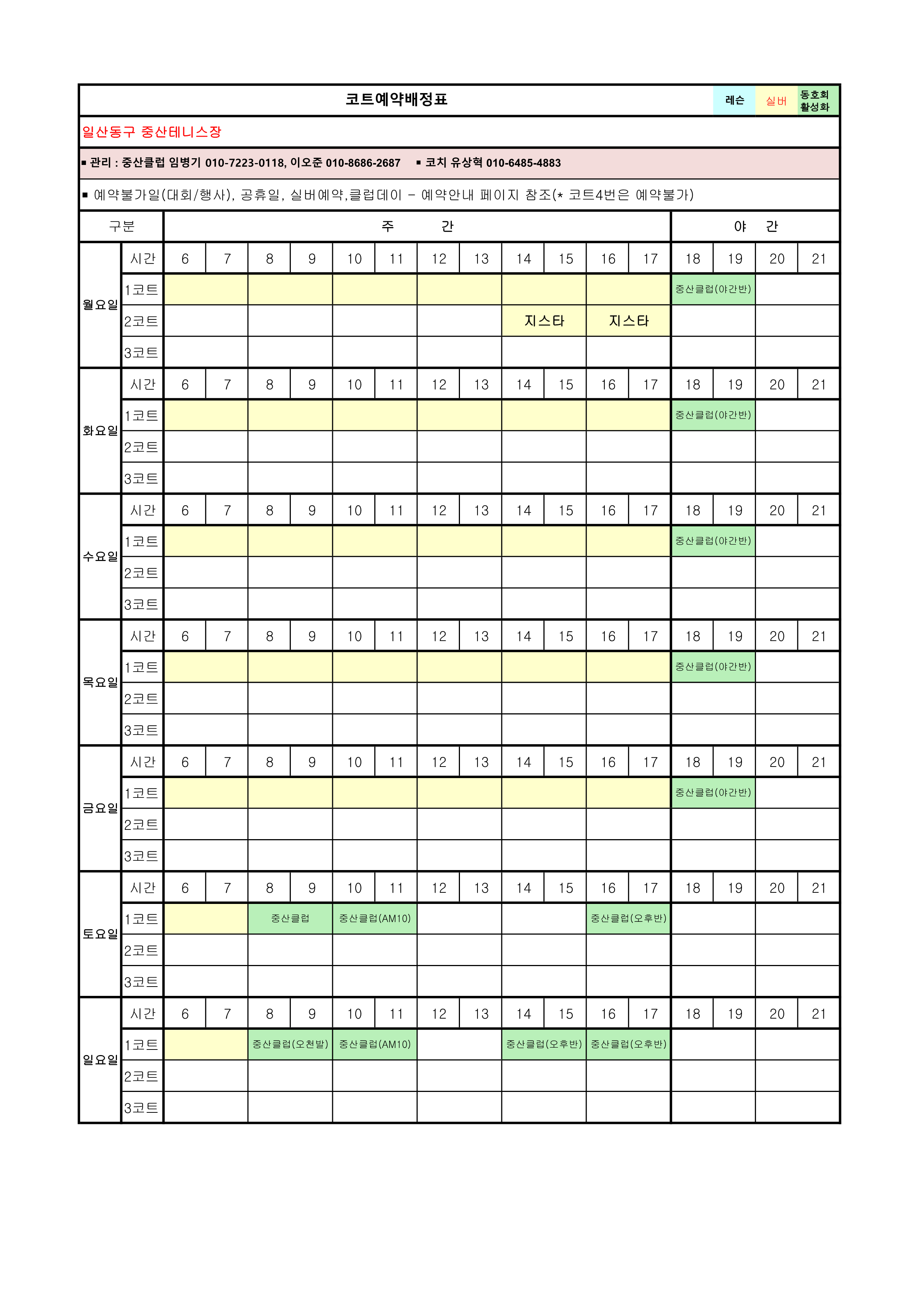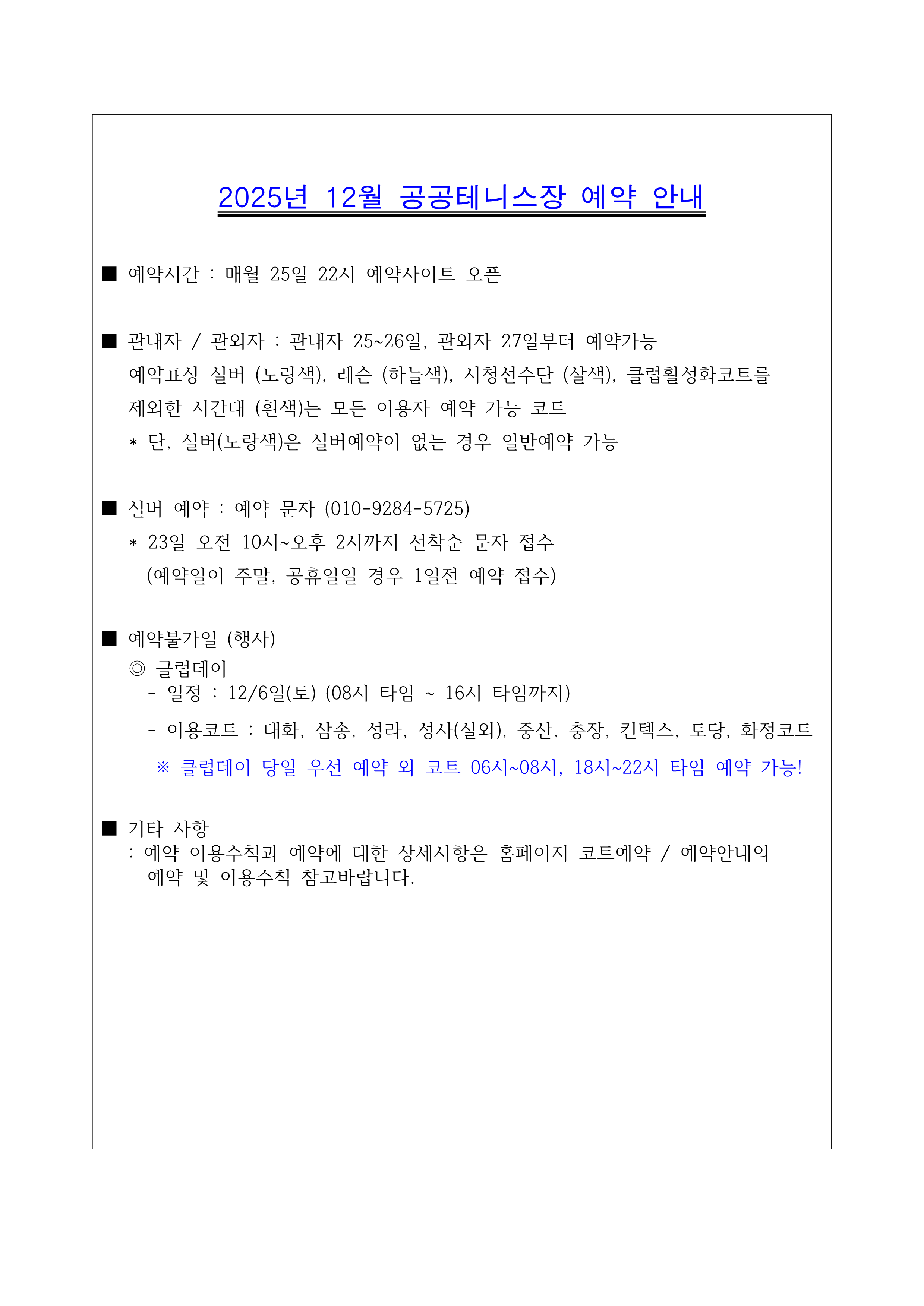 [안내]12월 코트예약 안내 및 코트 배정표