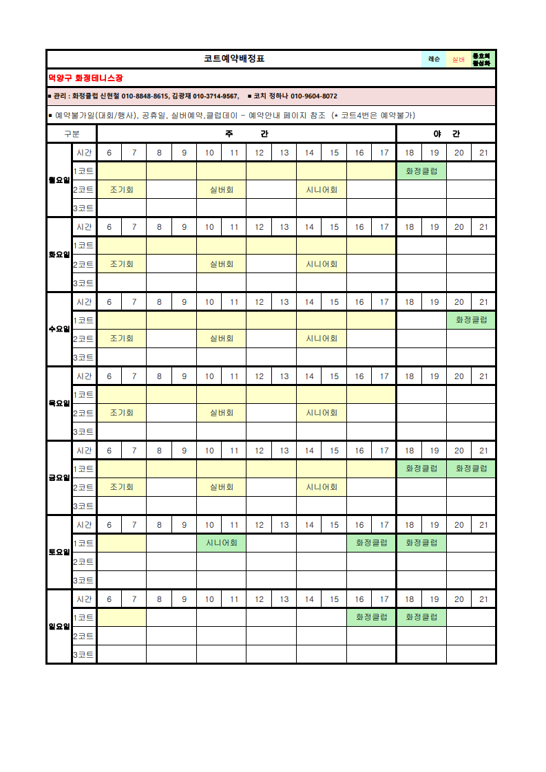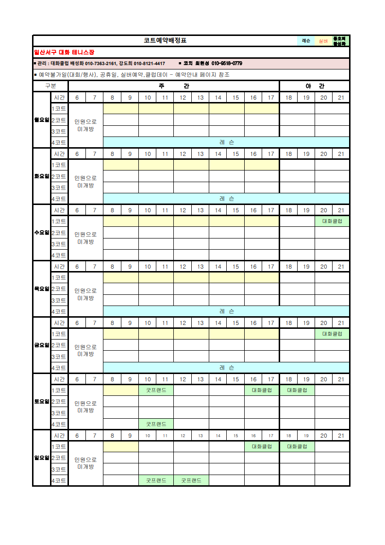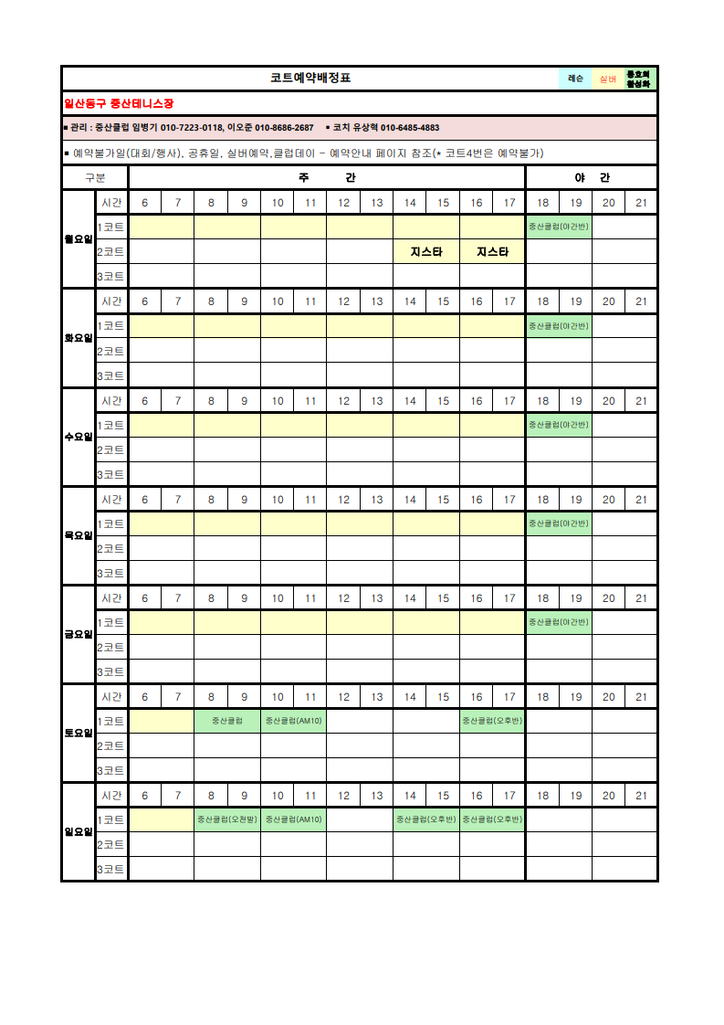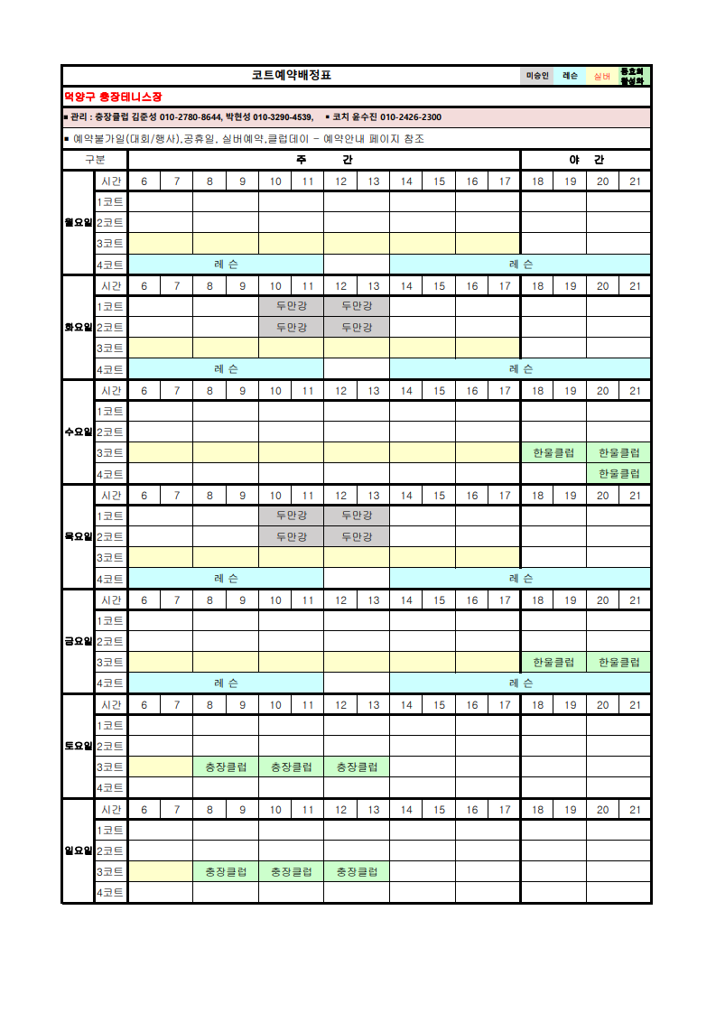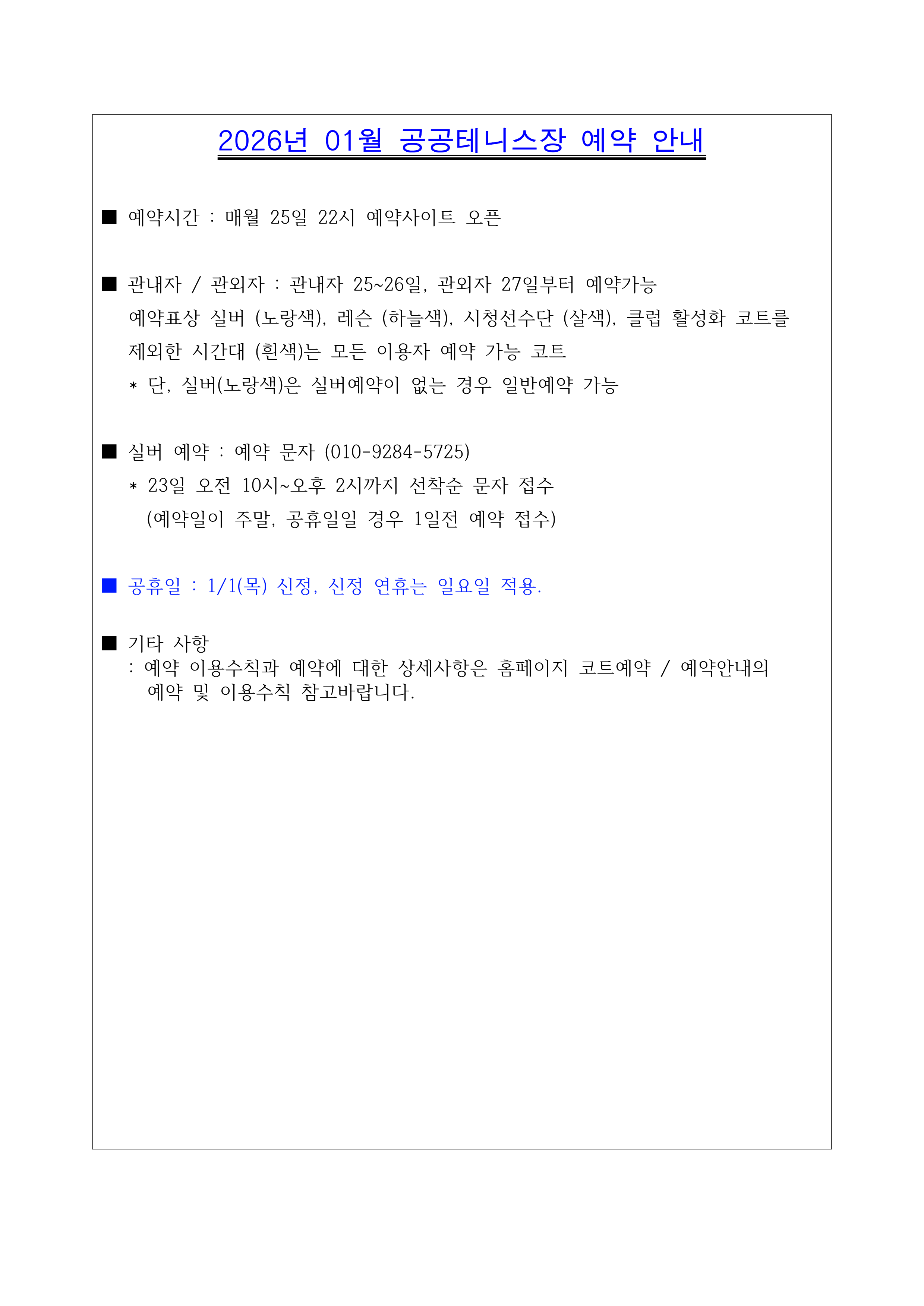 [안내] 2026년 1월 코트 예약 안내 및 코트 배정표