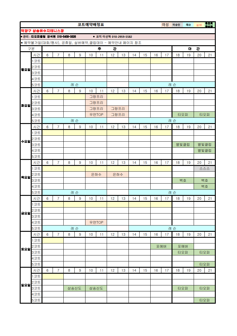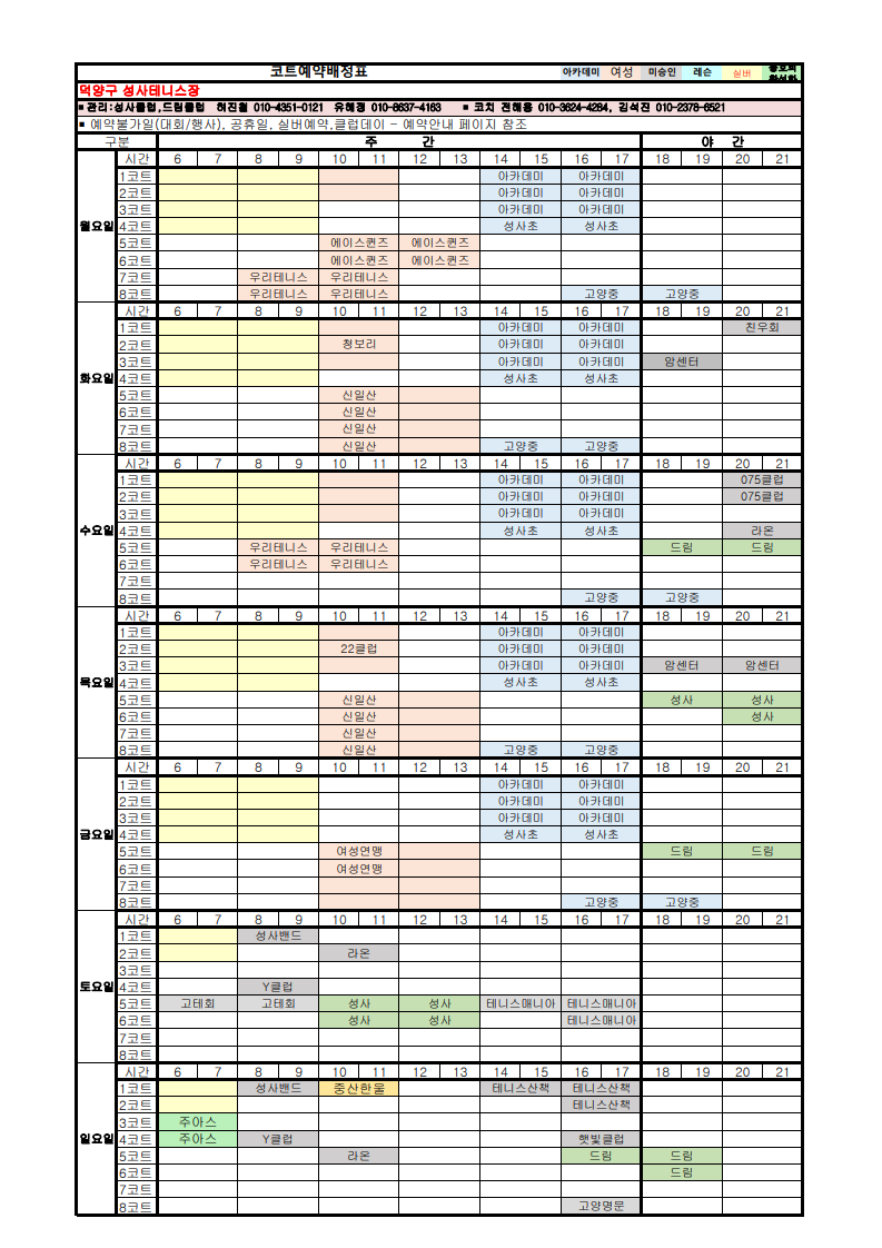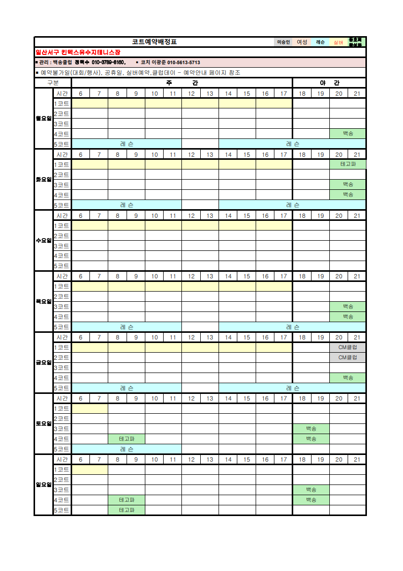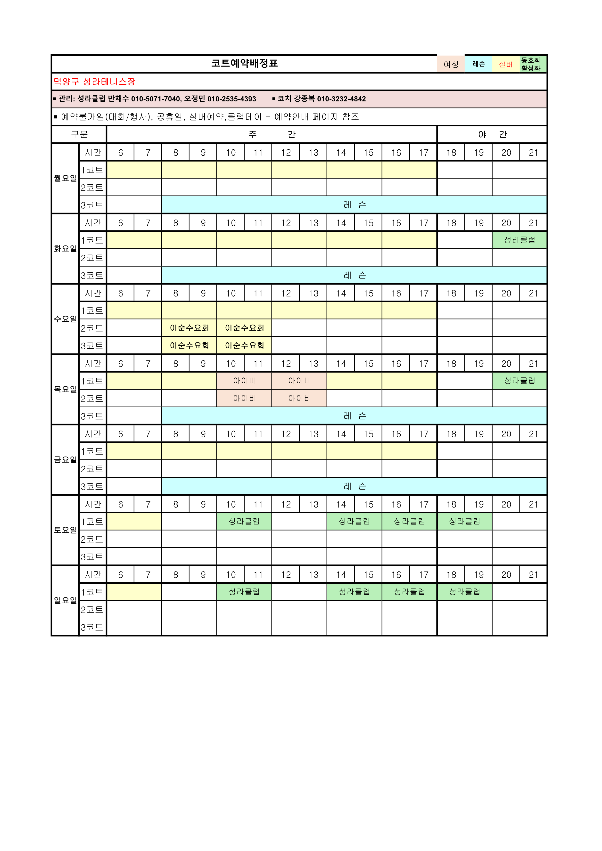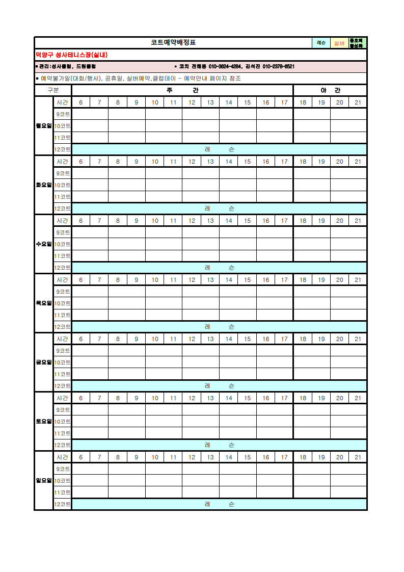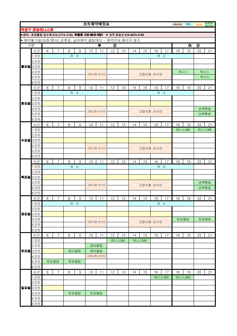 [안내] 2026년 1월 코트 예약 안내 및 코트 배정표