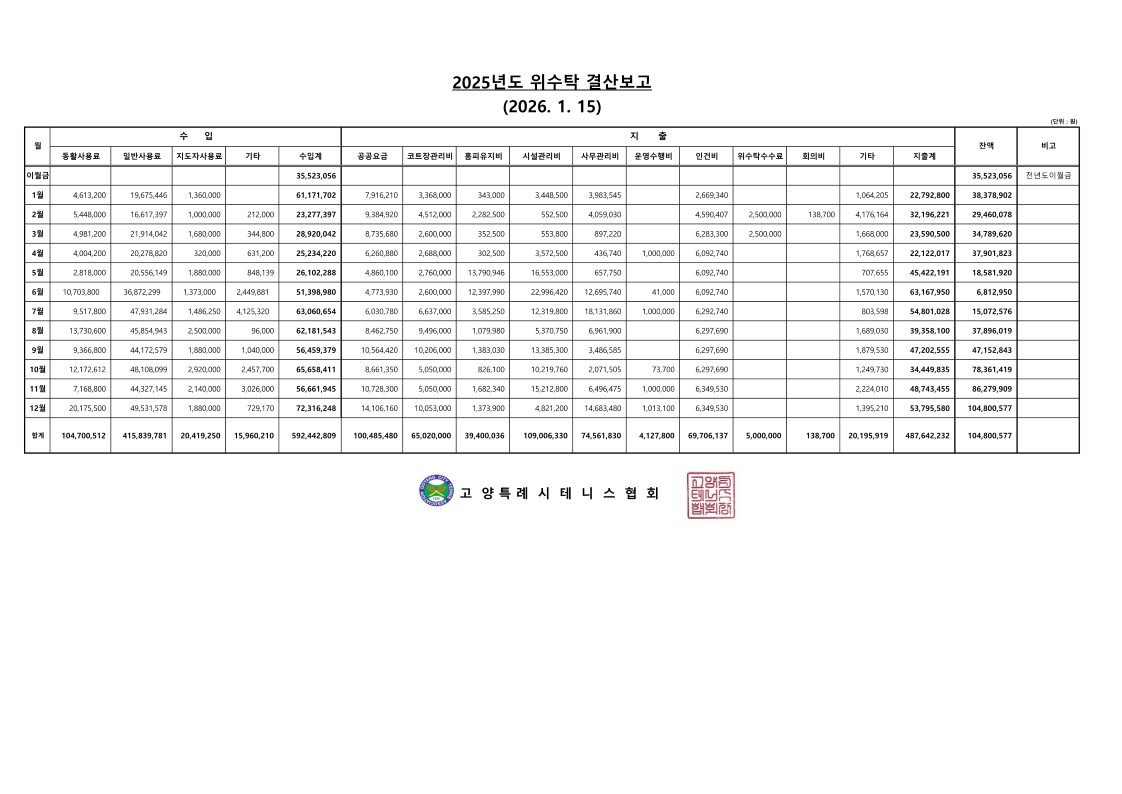 [공지] 2025년 12월 위수탁 관리와 운영비 사용 내역 공지
