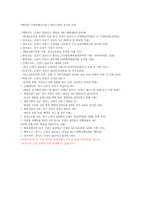 제35회 고양특레시시장기 테니스대회 경기장 안내